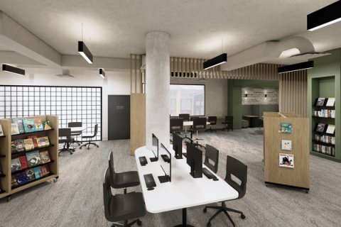 The upgraded space features a larger, brighter and more contemporary open-plan layout, with versatile areas for gathering, studying and working.